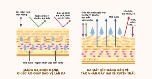 Làn da khỏe mạnh được bao phủ bởi lớp màng lipid – Hàng rào giữ ẩm và ngăn ngừa vi khuẩn, bụi bẩn. Tuy nhiên, tuổi tác, cộng thêm lối sống thiếu khoa học (thức khuya, stress, ăn uống không lành mạnh) sẽ khiến lớp màng này suy yếu, từ đó da dễ kích ứng hơn.